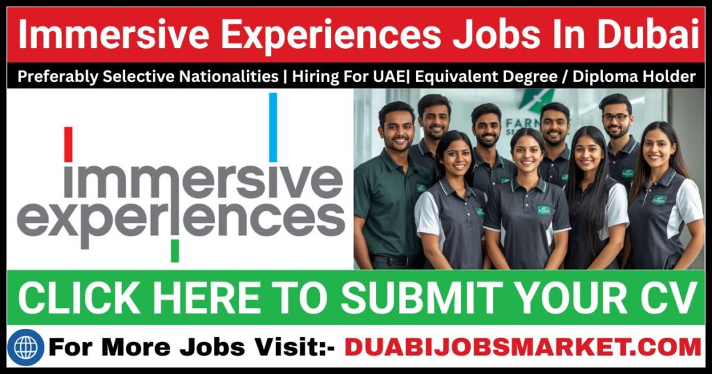 Immersive Experiences is known for delivering interactive entertainment concepts, family attractions, and customer-focused experiences across Dubai. With walk-in interview days and multiple roles open for freshers and experienced candidates alike, this is a solid opportunity for job seekers who want to enter Dubai’s fast-growing leisure and entertainment sector.